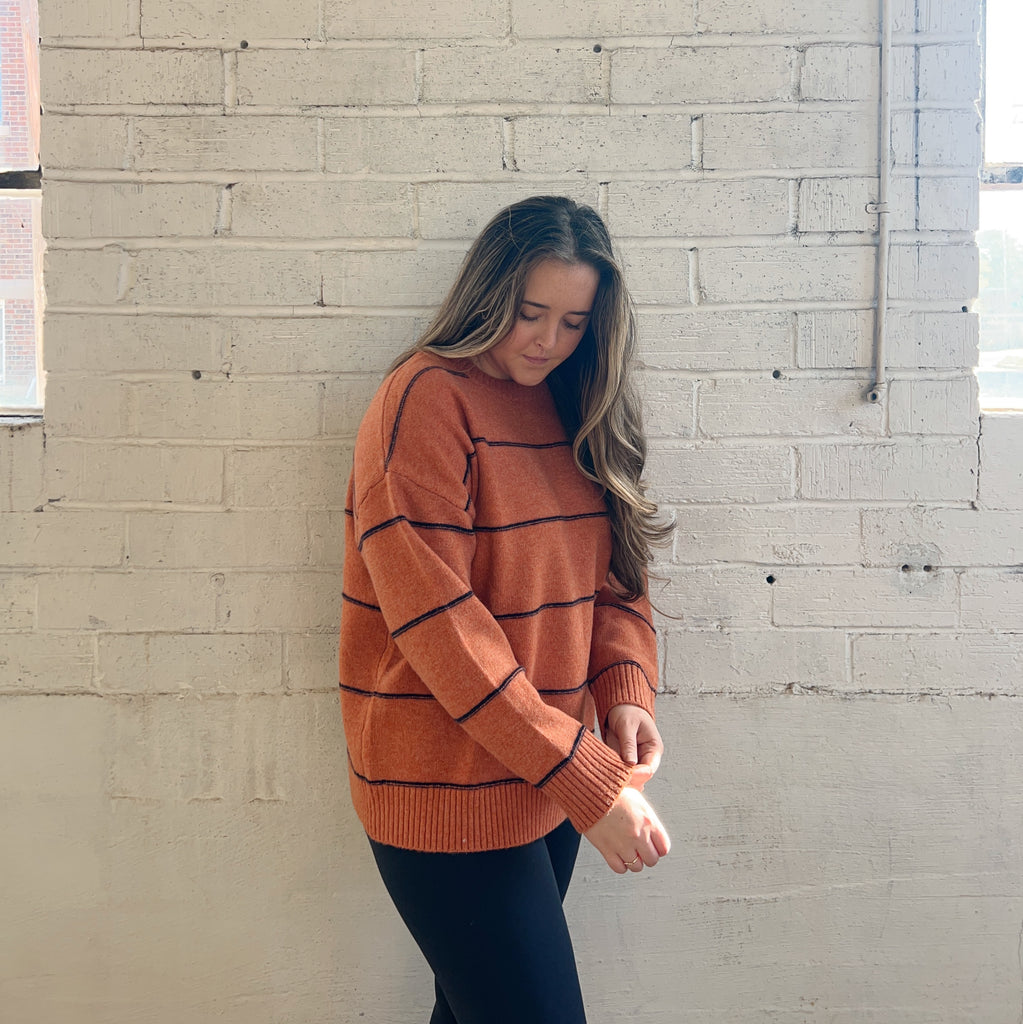 night in, this striped sweater is your go-to piece for a fashionable