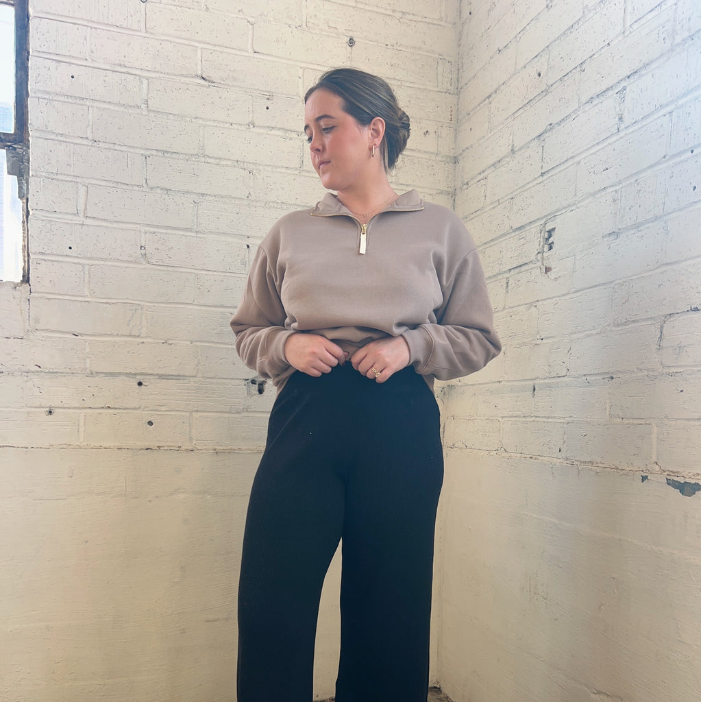 Fleece Quarter zip sweater, with collared detail.