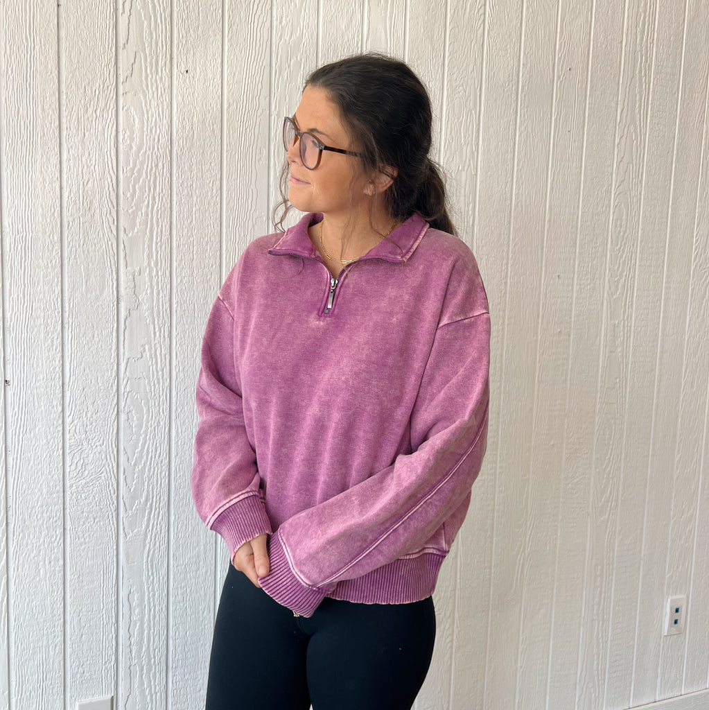 Quater zip pullover sweater.with cuffed sleeves.