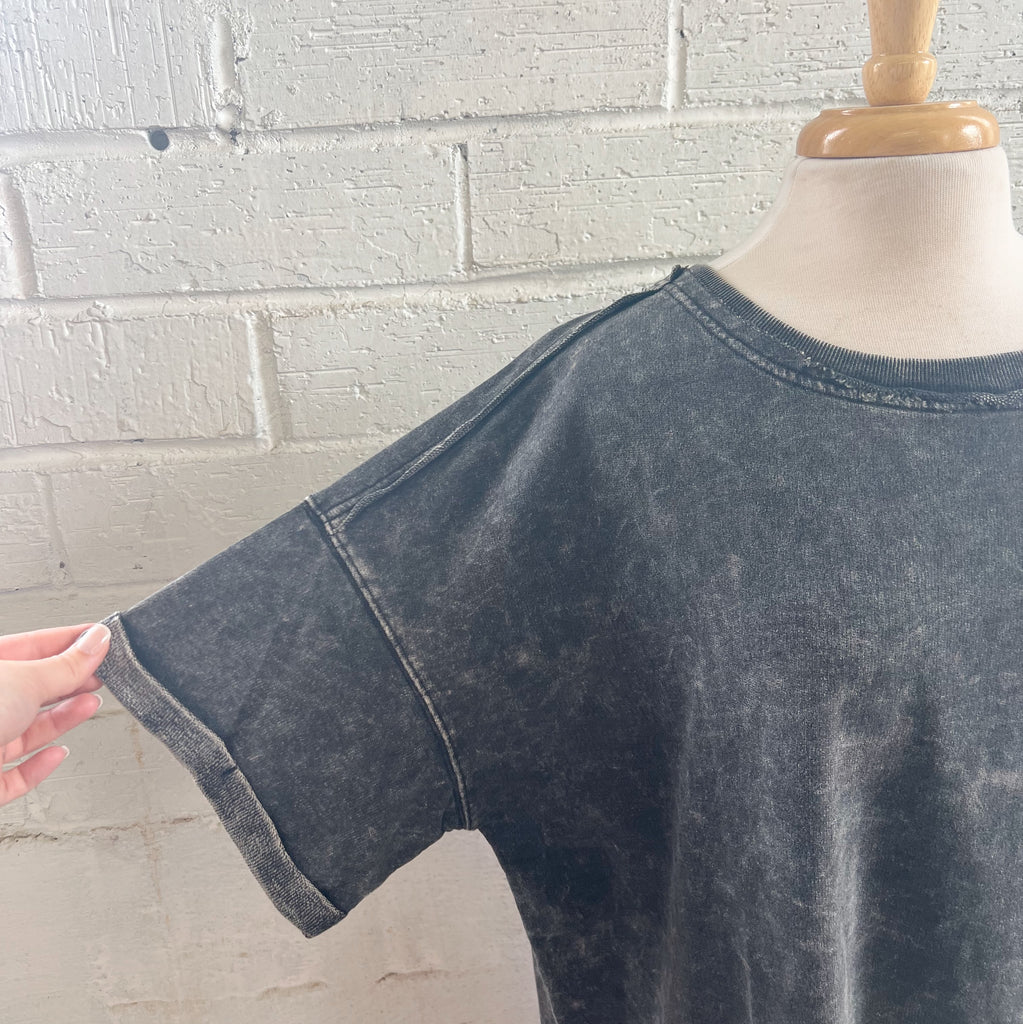 Acid washed t-shirt with raw hem detail.